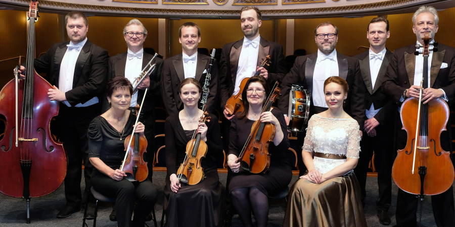 Účinkují: Gabriela Kopperová - sopranistka a Barbora Kolářová - housle a Originální salónní orchestr, který hraje v tzv. pařížském obsazení deseti hudebníků. Večerem provází Vladimír Smutný